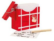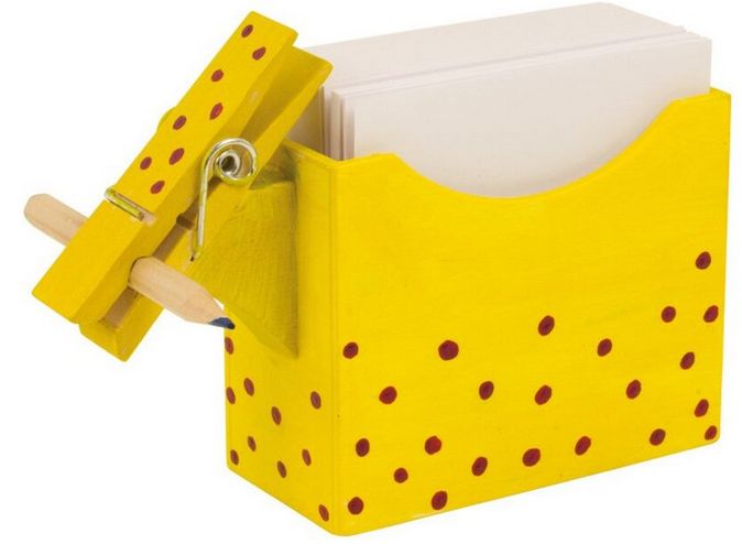 ... hält diese individuell bemalbare Zettelbox „Fridolin“ auf Ihrem Schreibtisch