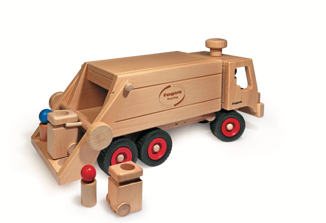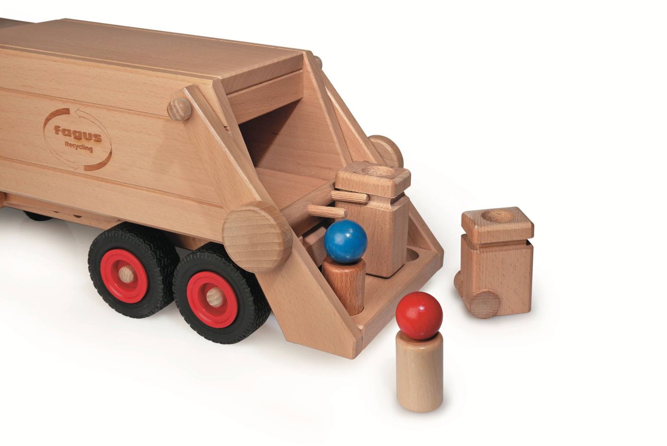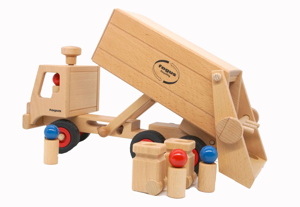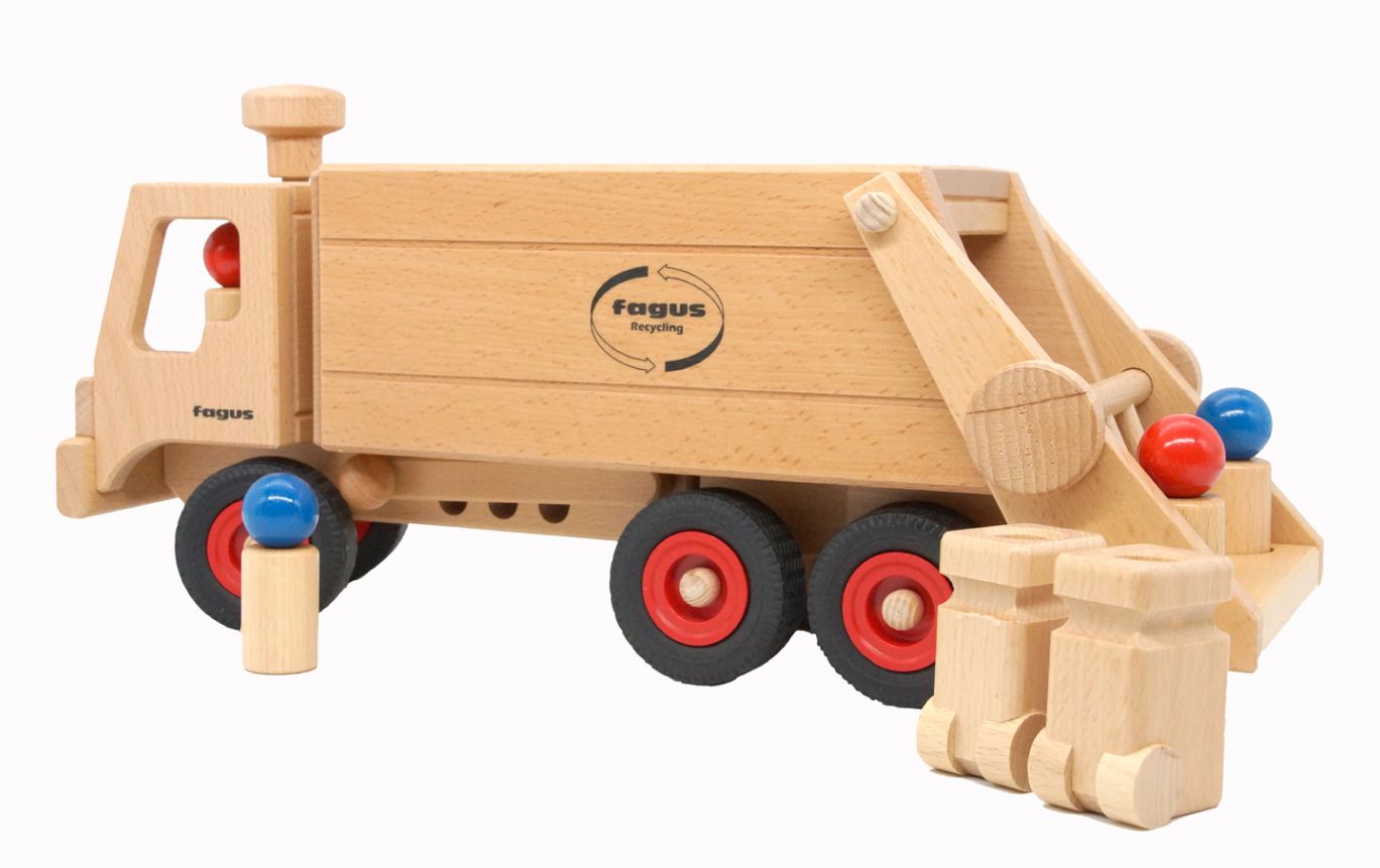 fährt von Haus zu Haus und beschäftigt die kleinen Müllwerker.