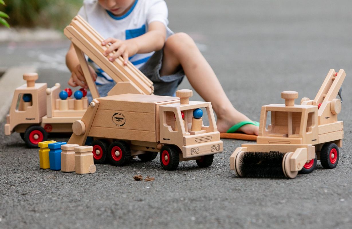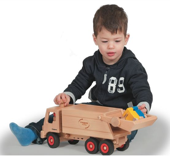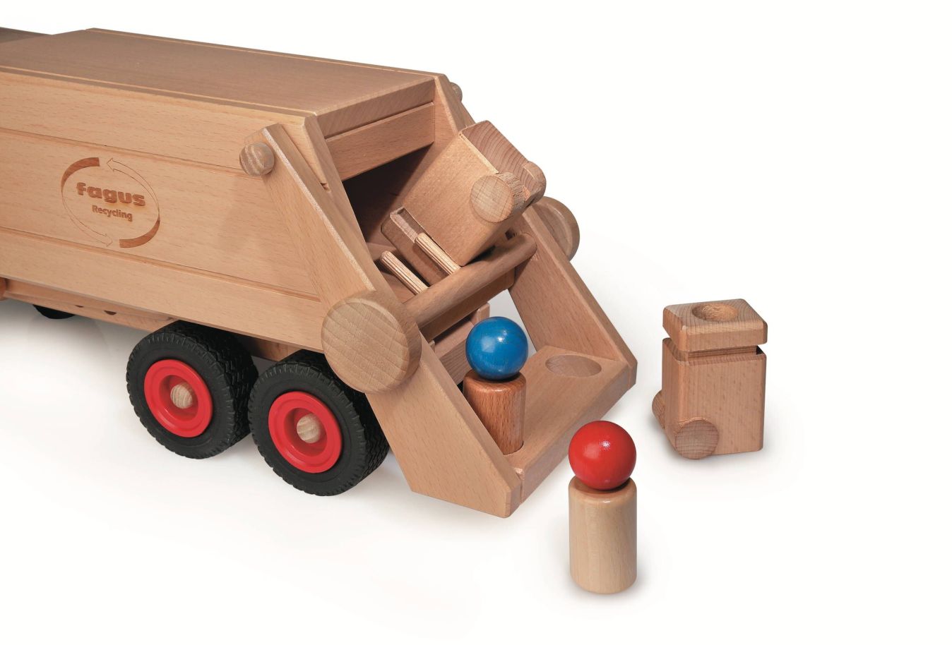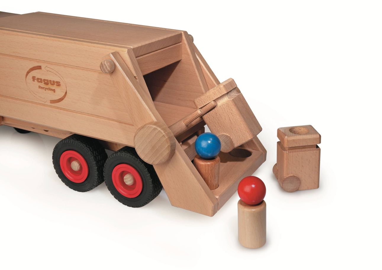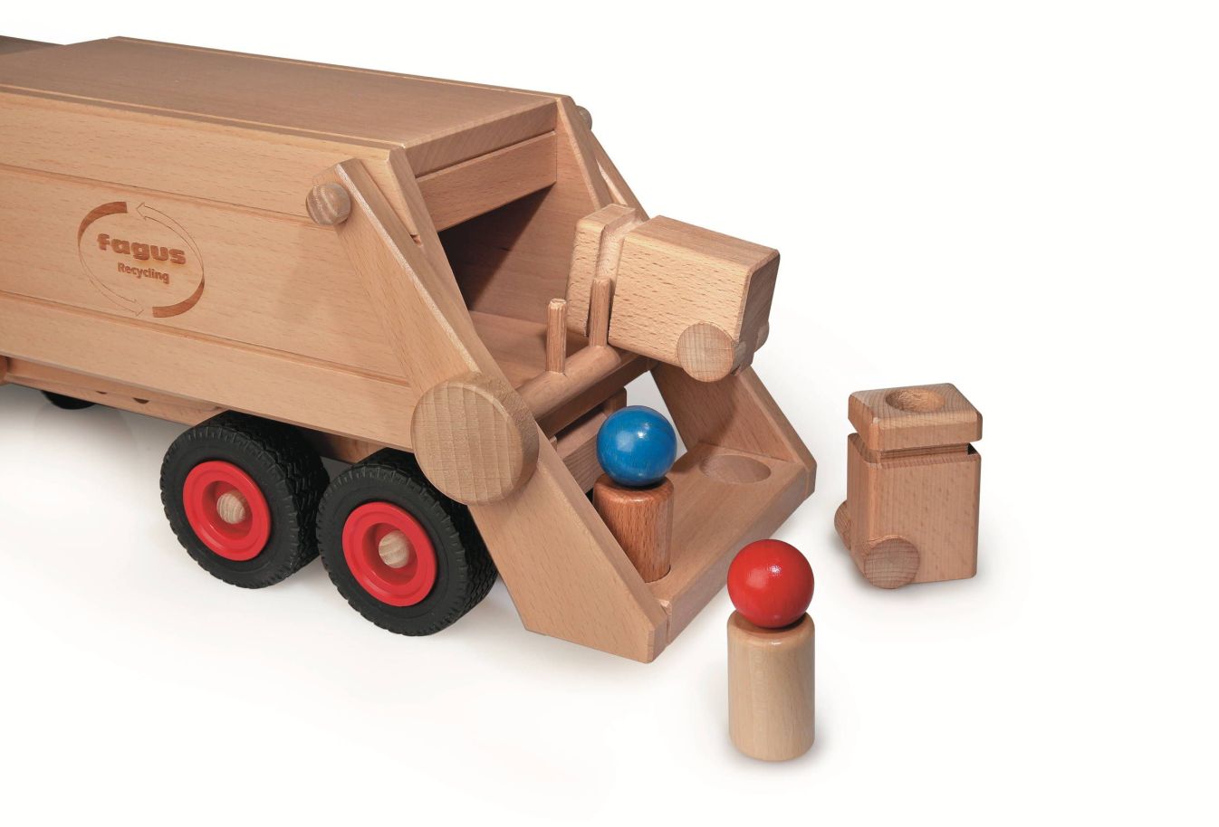 fährt von Haus zu Haus und beschäftigt die kleinen Müllwerker.