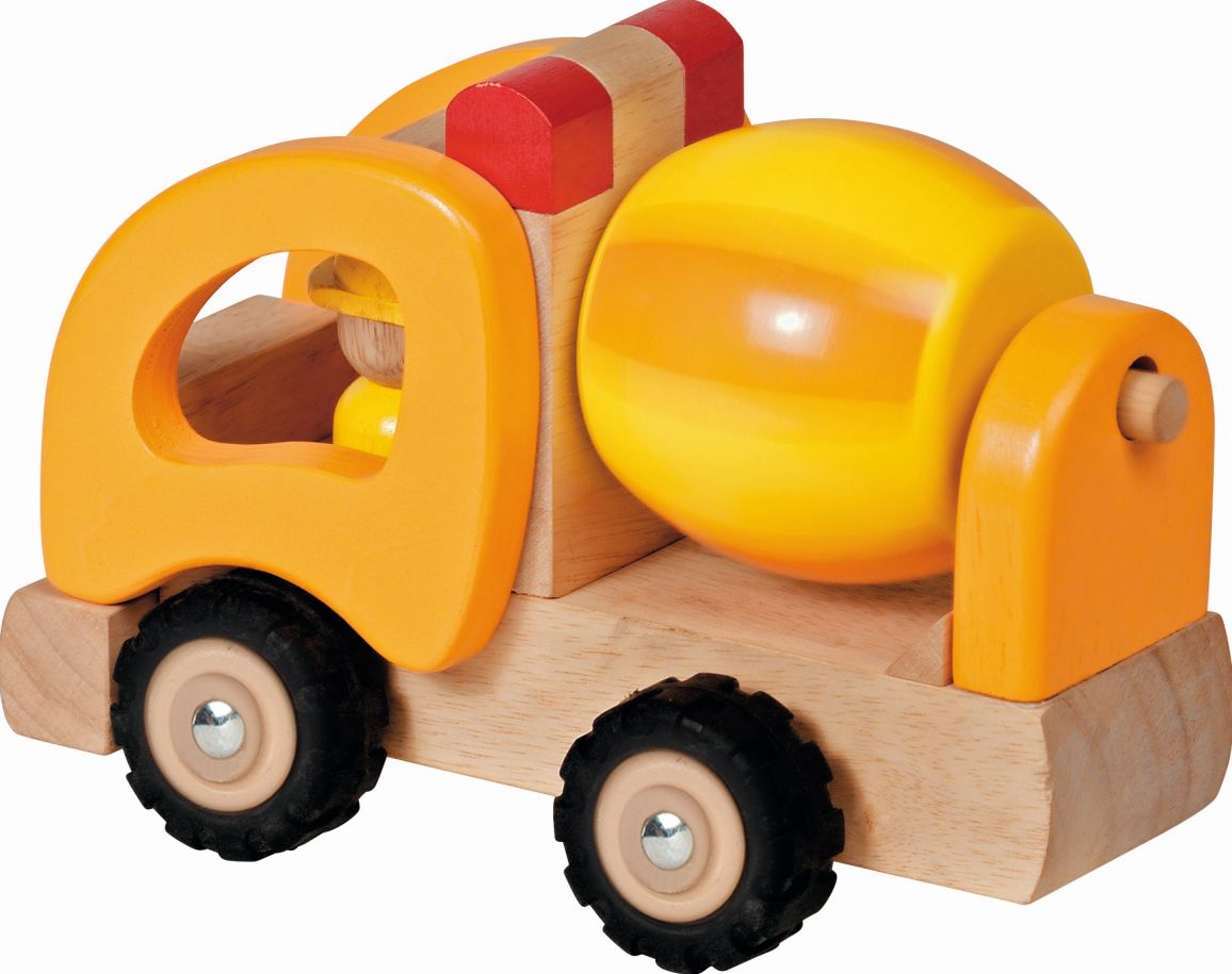 ansprechende Betonmischer mit beweglicher Trommel ist aus Massivholz gefertigt.